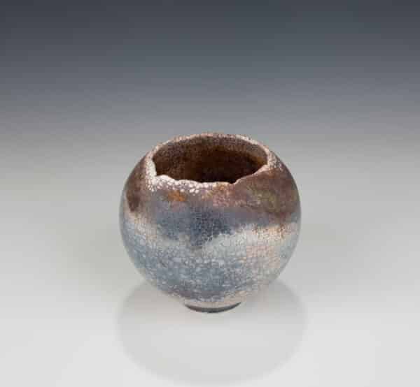 Stoney Orb, multifired, oxidation, saggar, $250.00, 13.5cm W x 13cm T
